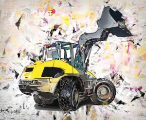 Przekaz artystyczny bardzo chętnie pozyskuje natchnienie z przemysłu. Twórcy nie tylko odtwarzają wygląd maszyn i przemysłowych form, ale włączają je wprost do swojej pracy. Maszyny budowlane, dotychczas obecne najczęściej na placach prac budowlanych, zyskują nowe znaczenia jako środki twórcze.
